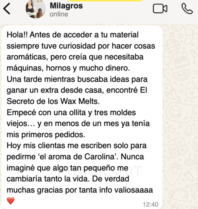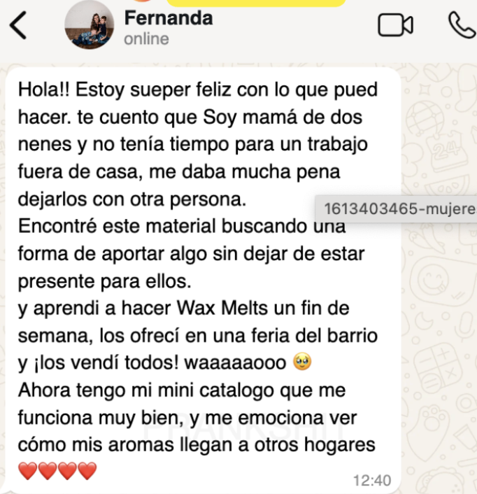 Con El Secreto de los Wax Melts, Sofía ha acompañado a cientos de mujeres a transformar un hobby creativo en un negocio real desde casa, con productos de alta calidad y alto valor percibido.