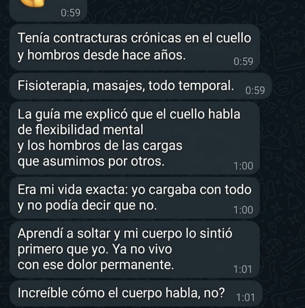 Comprenderás el lenguaje oculto de tu cuerpo y cómo las emociones reprimidas se manifiestan como síntomas físicos — para que puedas actuar desde la raíz, no solo tapar lo que duele.