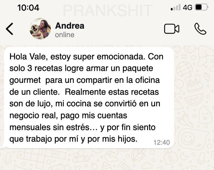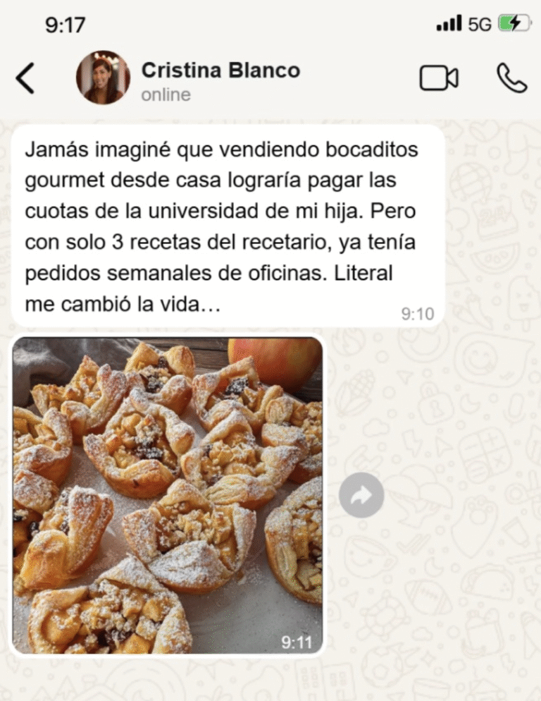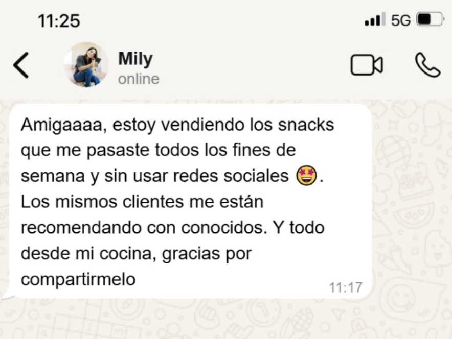 “Con este recetario armé mi primera bandeja de snacks para vender en mi barrio. En la primera semana recuperé 3 veces lo que invertí.”